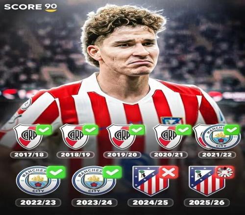 現(xiàn)年26歲的阿爾瓦雷斯,曾是足壇公認的“冠軍體質”球員,職業(yè)生涯起步便順風順水,出道前7年狂攬17座冠軍獎杯,2018年至2024年間更是年年捧杯,從未經(jīng)歷過無冠賽季。世界杯冠軍、歐冠冠軍、英超冠軍、美洲杯冠軍、南美解放者杯冠軍等重量級錦標悉數(shù)收入麾下,年紀輕輕便實現(xiàn)了俱樂部與國家隊層面的榮譽大滿貫,這份奪冠履歷在同齡球員中堪稱獨一檔。