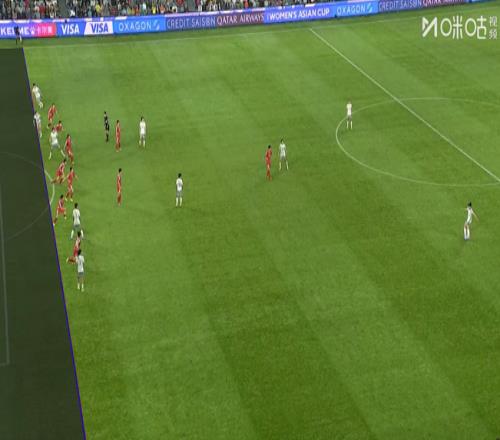 劃線瞬間!畫面顯示,朝鮮女足防守球員腿部拖在最后