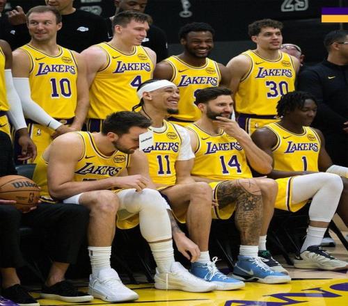 湖人拍攝全家福!東契奇搞怪把名字貼額頭詹姆斯布朗尼笑容滿面