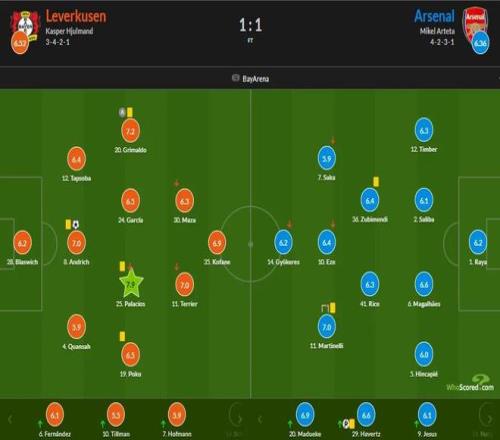 本場(chǎng)比賽安德里希利用角球機(jī)會(huì)頭球建功,幫助勒沃庫森在主場(chǎng)取得了1-0的領(lǐng)先,不過替補(bǔ)登場(chǎng)的哈弗茨,在最后時(shí)刻手刃舊主,打入絕平進(jìn)球,阿森納1-1逼平勒沃庫森,停下了歐冠8連勝的腳步。