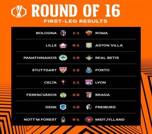 歐聯(lián)杯18決賽首回合賽果:五大聯(lián)賽球隊(duì)僅維拉取勝