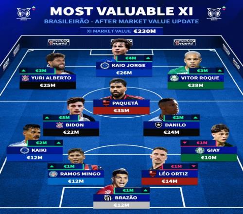 體育播報3月13日宣 德國轉(zhuǎn)會市場公布了新一期巴甲球員身價情況,同時評選出了最貴陣,羅克、帕奎塔領(lǐng)銜。