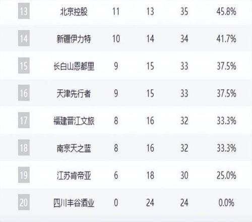 吉林連敗不止,狀態(tài)持續(xù)下滑;天津兩連勝,悄然復(fù)蘇;福建、江蘇深陷泥潭,連敗不止;同曦敗給廣廈,徹底失去爭八希望。