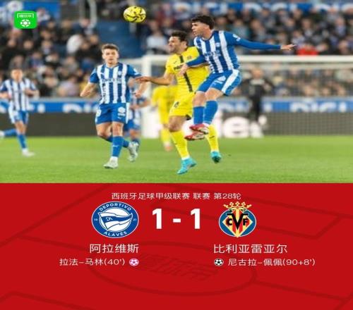 北京時(shí)間3月14日西班牙足球甲級聯(lián)賽 聯(lián)賽 第28輪,阿拉維斯主場對陣比利亞雷亞爾。比利亞雷亞爾尼古拉-佩佩破門,拉法-馬林自擺烏龍。最終比分阿拉維斯 1-1 比利亞雷亞爾。