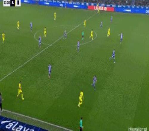 第40分鐘,拉法-馬林頭球解圍變?yōu)觚?,阿拉維斯1-0比利亞雷亞爾