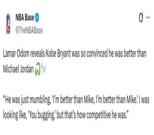 奧多姆還在節(jié)目上透露:科比當(dāng)年堅(jiān)信自己比喬丹更強(qiáng)。“他當(dāng)時(shí)一直在念叨:‘我比邁克強(qiáng),我比邁克強(qiáng)?!耶?dāng)時(shí)心想:‘你瘋了吧’,但他骨子里就是這么好勝?!?/p>