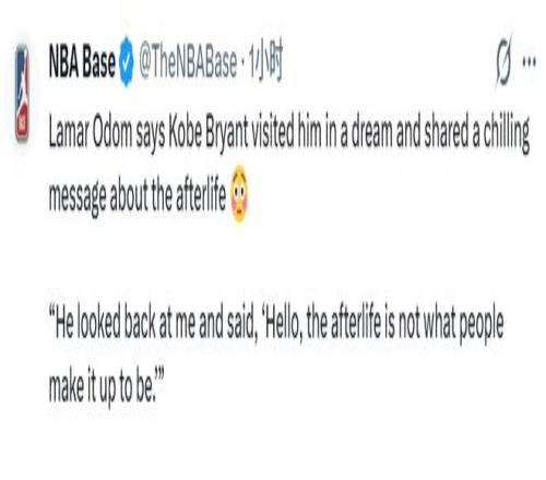 值得一提的是在2022年,也就是4年前,奧多姆曾提到自己夢(mèng)到科比。當(dāng)時(shí)奧多姆在節(jié)目中告訴體育評(píng)論員夏普,這位NBA傳奇的靈魂至少四次在夢(mèng)中出現(xiàn)。