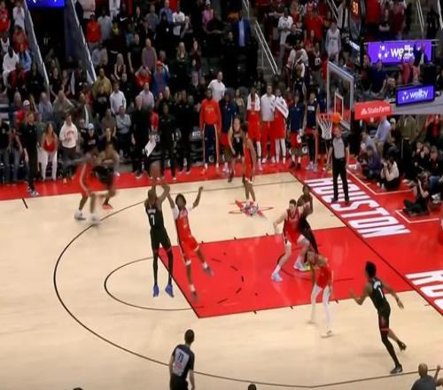 杜蘭特第一時間沒接到球,邊線球發(fā)給小賈之后,杜蘭特才接到球,沒有給鵜鶘上來包夾的機會,杜蘭特接球轉身,兩次運球來到罰球線位置,無視赫伯特-瓊斯的防守干拔跳投,準絕殺命中,火箭反超。