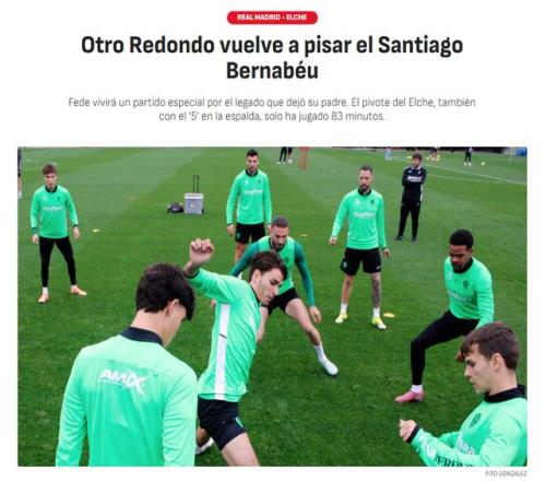 北京時間3月15日凌晨4點,西甲第28輪,皇馬主場迎戰(zhàn)埃爾切。賽前,《阿斯報》指出,埃爾切陣中,有皇馬球迷熟悉的“星二代”。費爾南多-雷東多的兒子費德里科-雷東多(小雷東多),就在該隊效力。