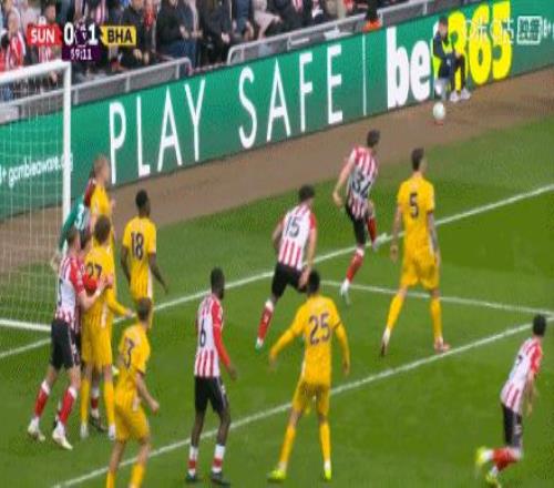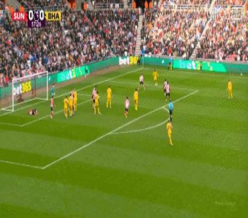 第57分鐘,打破僵局!明特小角度射門打進,桑德蘭0-1布萊頓