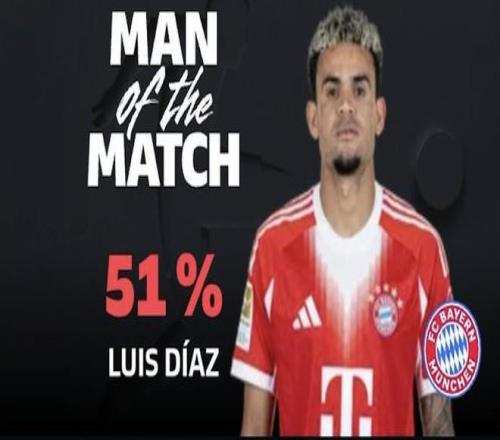 最終經(jīng)過德甲官網(wǎng)球迷投票,路易斯-迪亞斯以51%的得票率當(dāng)選本場比賽最佳球員。