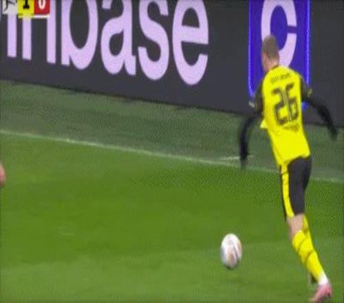 第13分鐘,阿德耶米射門打在達門臉上入網(wǎng),多特1-0領先