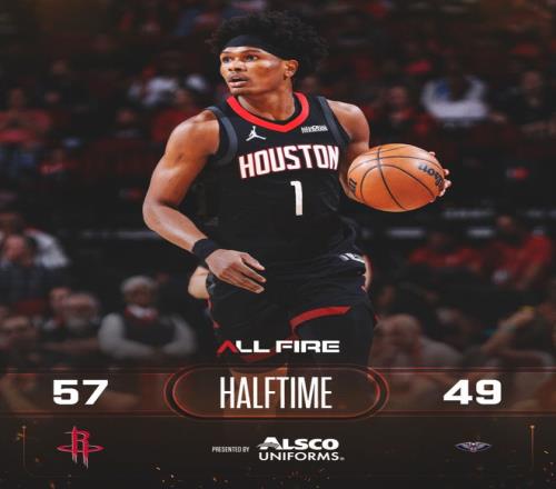 火箭隊(duì)的湯普森上半場(chǎng)得到15分和7個(gè)籃板,杜蘭特得到14分、4個(gè)籃板和3次助攻;鵜鶘隊(duì)的穆雷得到19分和5個(gè)籃板,墨菲得到10分。