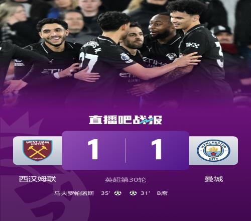 曼城1-1戰(zhàn)平西漢姆聯(lián),各項賽事近4戰(zhàn)只收獲1勝,聯(lián)賽落后榜首9分。