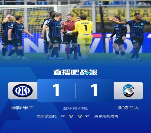 國米1-1戰(zhàn)平亞特蘭大,意甲2輪不勝,近5場各項賽事僅1勝,先賽仍8分領(lǐng)跑意甲。