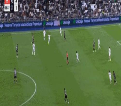 第44分鐘,巴爾韋德斜傳策動反擊,隨后接到弗蘭-加西亞的倒三角傳球,禁區(qū)前沿變向晃開角度順勢兜射,皮球直掛死角,皇馬再下一城,2-0!