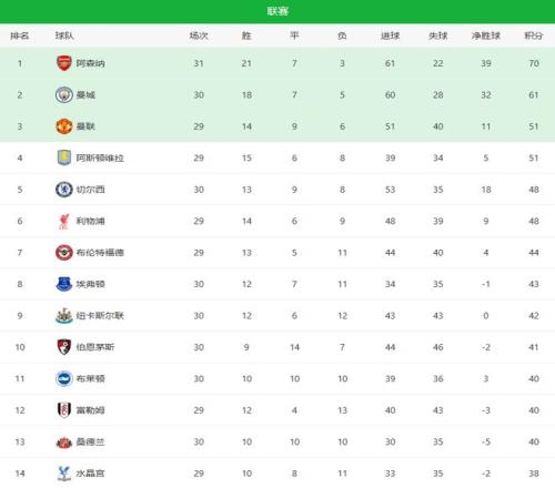 英超第30輪迎來三場焦點大戰(zhàn)。爭冠、爭四乃至歐戰(zhàn)格局同時發(fā)生震蕩,阿森納在主場頂住壓力2-0擊敗埃弗頓,繼續(xù)領跑英超積分榜;曼城客場1-1被西漢姆聯爆冷逼平,爭冠形勢急轉直下;而切爾西則在斯坦福橋再次失利0-1不敵紐卡斯爾,短短三天內遭遇雙線崩盤。
