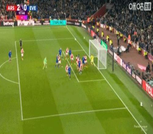 補(bǔ)時(shí)第7分鐘,埃弗頓為了扳平比分,孤注一擲,全員壓上,就連門將皮克福德都棄門而出,沖到前場(chǎng)參與進(jìn)攻,后場(chǎng)徹底空無一人。