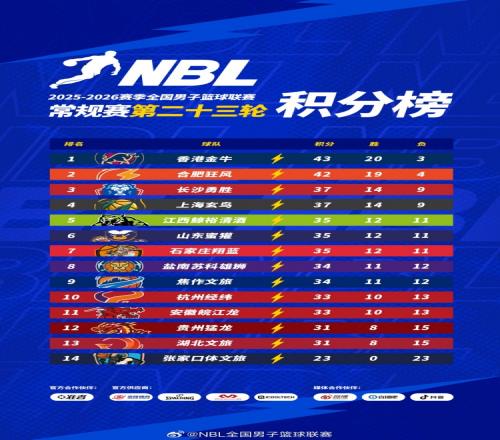 【積分榜】20252026賽季NBL常規(guī)賽積分榜截至第二十三輪結(jié)束