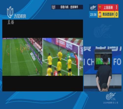第22分鐘,上海海港通過角球打入一球,李帥罰向前點被解圍后,萊昂納多在后點補射得手。但主裁判經VAR裁判提示后親自察看回放,示意海港外援讓·克勞德沖撞門將在先,進球無效。