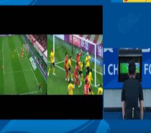 比賽的第21分鐘,楊希主罰角球左腳勁射被李昊封出,萊昂納多補(bǔ)射破門。在萊昂納多破門之后,李昊向主裁判憤怒投訴,認(rèn)為克勞德沖撞了自己。隨后,視頻助理裁判介入判罰,并且要求主裁判回看慢鏡頭。