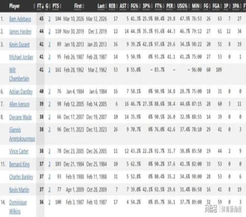 其中有兩項紀錄跟罰球那是“糾纏不清”。其一呢,阿德巴約兩場比賽加起來,罰球次數(shù)高達56次,直接把小喬丹從“罰球紀錄寶座”上給拽了下來,自己美滋滋地坐了上去,成了NBA歷史新晉“罰球王”。其二更猛,兩場比賽靠罰球就拿了45分,把哈登都給比下去了,這罰球得分能力,簡直比印鈔機還猛!