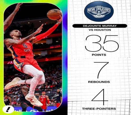 拿上一場對陣火箭的比賽來說,鵜鶘客場105-107不敵對手,但是德章泰穆雷的表現(xiàn)可以說相當不錯: