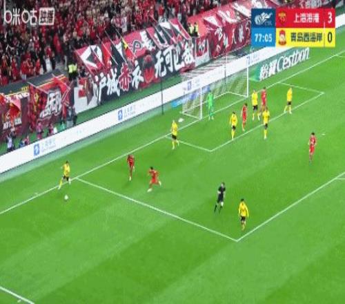 青島西海岸打入挽回顏面的一個進球。