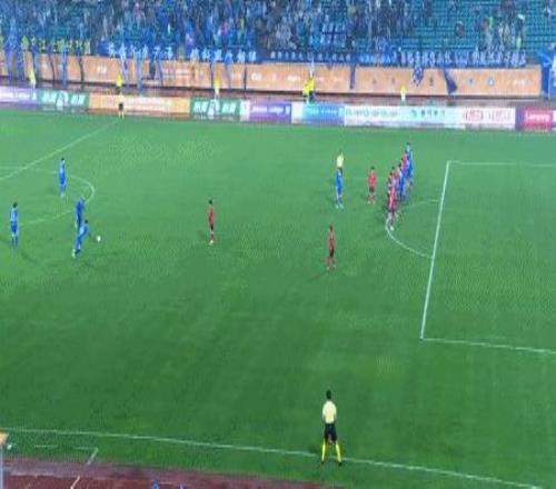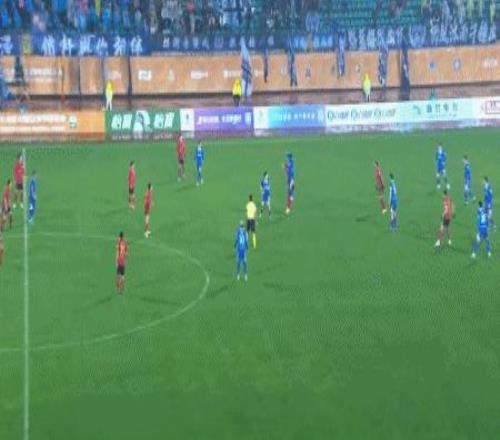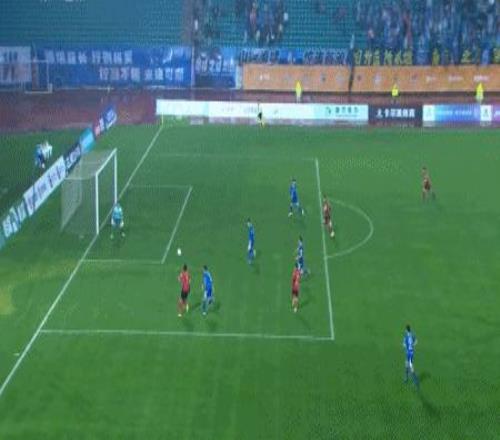 第57分鐘,余夢輝帶球到弧頂起腳低射破門,南京城市2-1長春亞泰