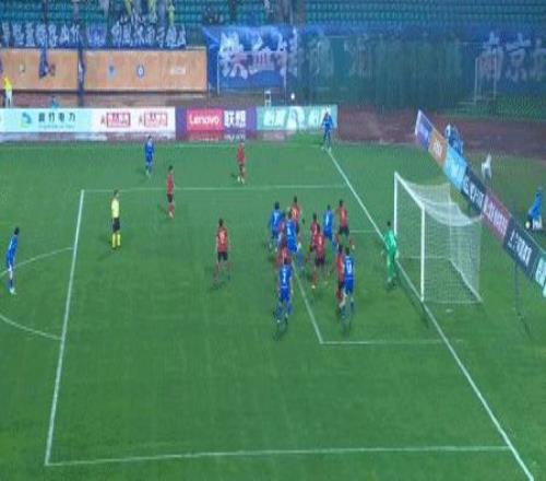 第45+3分鐘,姆貝克利角球開出,澤-維托爾頭球破門扳平,南京城市1-1