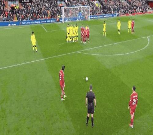 第18分鐘,利物浦獲得前場任意球,索博斯洛伊的射門繞過人墻,打出電梯球的效果,皮球急速下墜,維卡里奧撲救不及,利物浦取得領(lǐng)先。
