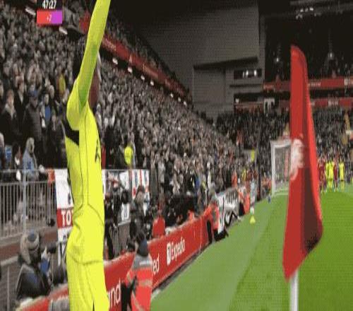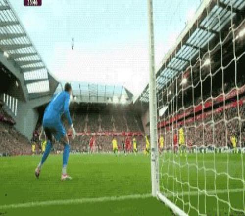 第18分鐘,利物浦獲得前場(chǎng)任意球,索博斯洛伊直接射門,皮球繞過人墻,維卡里奧雖然碰到皮球,怎奈力量太大,無法阻擋皮球入網(wǎng)。