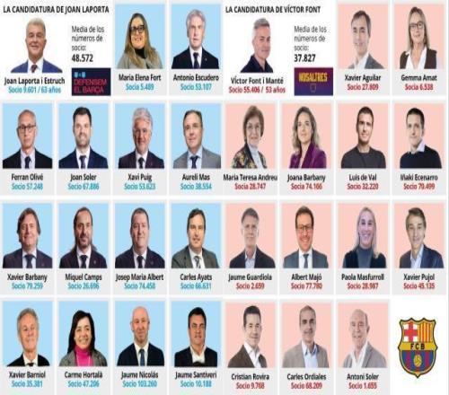 挑戰(zhàn)者中,除了2021年曾斬獲近30%選票的豐特之外,還有比拉華納與馬克·西里亞。前者是巴托梅烏董事會中分管青訓的董事,被視作近幾個賽季青訓球員涌現(xiàn)背后的關(guān)鍵人物;后者則是經(jīng)濟學家,曾是拉波爾塔2015年參選時團隊的一員。三人一度密切商討聯(lián)合參選的可能性,但最終因西里亞不滿比拉華納的巴托梅烏背景而告吹。然而簽名時間截止后,三人中只有豐特闖關(guān)成功,他獲得了5144份簽名,超過了2021年的4713份。比拉華納僅獲得1593份簽名,而西里亞雖提交了2844份簽名,但經(jīng)過核驗后僅有2247份有效,低于2337份(即會員大會人數(shù)半數(shù))的門檻。