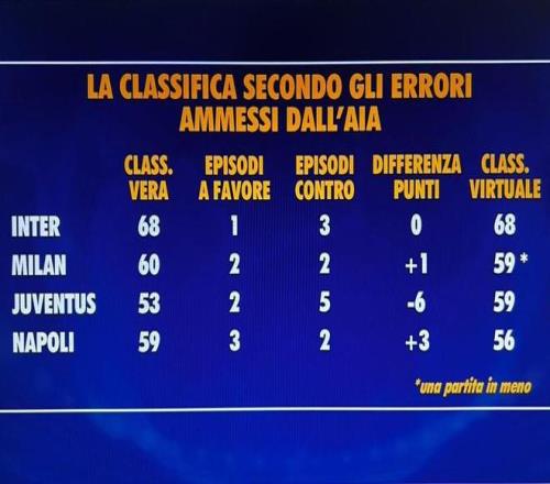本賽季意甲誤判影響:尤文5次遭遇誤判少拿6分,國米積分不變