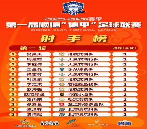 威水!順德“德甲”循環(huán)賽第一輪積分榜、射手榜來了
