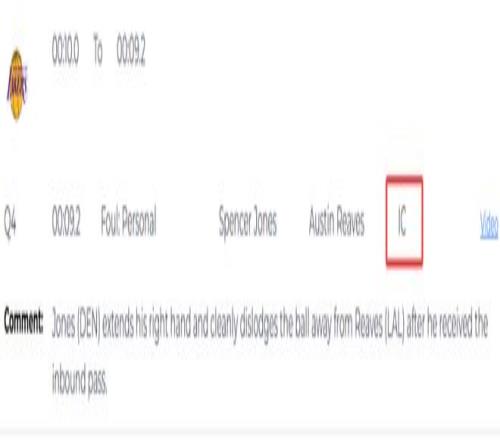 唯一一次錯判,發(fā)生在距離比賽結束還有9.2秒。裁判報告指出,掘金的瓊斯在里夫斯接到邊線發(fā)球后,伸出右手干凈利落地把球斷了下來。而當值裁判吹的是瓊斯犯規(guī),這是一次錯判,里夫斯本不該獲得兩次罰球機會。這個回合,里夫斯兩罰兩中,幫助湖人縮小分差。湖人明顯獲利,掘金吃虧。