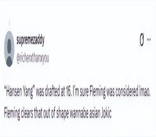 “我不想說太多,但現(xiàn)在真的很難想象楊瀚森未來會成為一名優(yōu)秀的NBA球員。”