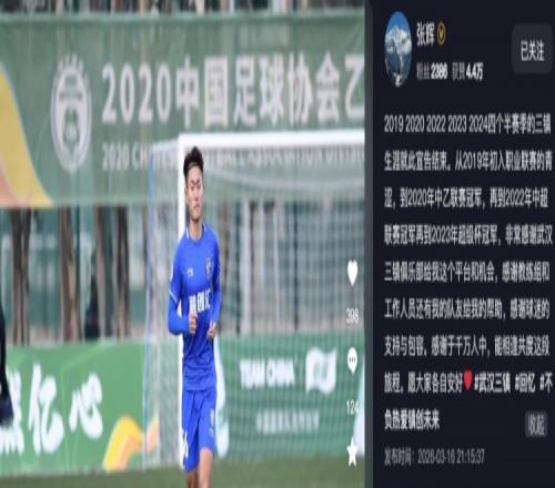 張輝在個人社交媒體中寫道:2019 2020 2022 2023 2024四個半賽季的三鎮(zhèn)生涯就此宣告結(jié)束。從2019年初入職業(yè)聯(lián)賽的青澀,到2020年中乙聯(lián)賽冠軍,再到2022年中超聯(lián)賽冠軍再到2023年超級杯冠軍,非常感謝武漢三鎮(zhèn)俱樂部給我這個平臺和機(jī)會,感謝教練組和工作人員還有我的隊友給我的幫助,感謝球迷的支持與包容。感謝于千萬人中,能相逢共度這段旅程。愿大家各自安好??