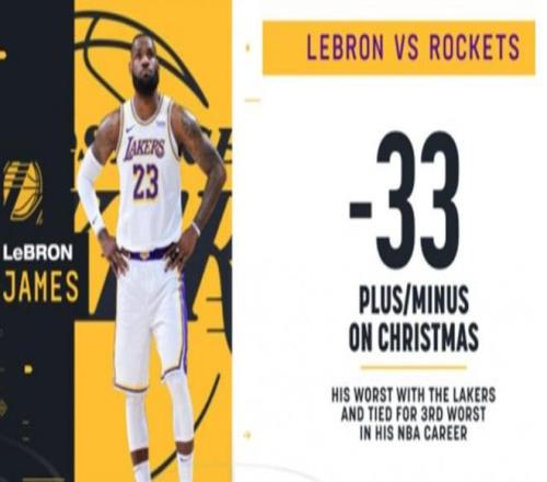這不僅是他對陣杜蘭特生涯的正負(fù)值新低,同時也是加盟湖人以來,正負(fù)值最低的一場。