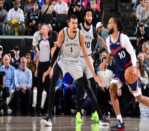 馬刺上一場主場115-102戰(zhàn)勝黃蜂,快船上一場主場109-118輸給國王,本賽季首次交鋒馬刺客場116-112險勝快船完成25分大逆轉(zhuǎn)。本場馬刺缺少哈珀與科內(nèi)特,快船缺少萊昂納德、比爾與尼德豪澤。首節(jié)前3分鐘馬刺僅罰球得到1分,被快船內(nèi)外開花壓制1-13落后,馬刺隨后繼續(xù)被拉開3-17落后。馬刺很快一波8-0攻勢追分,快船連中兩記三分,馬刺沖擊內(nèi)線追到26-33??齑B得4分?jǐn)U大11分優(yōu)勢,馬刺追回3分,首節(jié)結(jié)束馬刺29-37落后快船。首節(jié)馬刺三分12中1,文班亞馬4中1得到2+3+1;快船三分7中5,加蘭6中4命中2記三分得到10分與馬瑟林8分。
