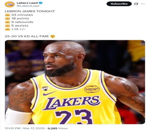 他全場比賽33分鐘,13中7,三分3中1,罰球4中3,拿到18分5籃板5助攻2搶斷1失誤,命中率53.8%,真實(shí)命中率61%,正負(fù)值+13的全面數(shù)據(jù)。詹姆斯自3月13日復(fù)出以來湖人沒有輸過球。