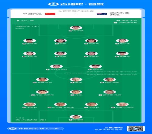 中國女足vs澳大利亞:王霜停賽,張琳艷、烏日古木拉、邵子欽先發(fā)