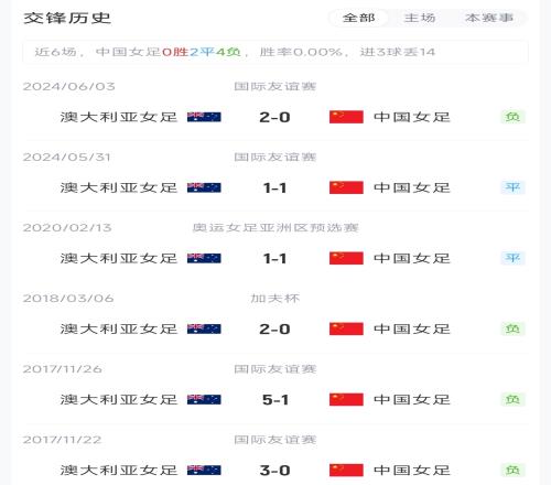 中澳兩隊最近的交鋒是在2024年,當(dāng)時剛擔(dān)任中國女足主帥的米利西奇率隊前往澳大利亞進(jìn)行友誼賽,中國女足在客場戰(zhàn)績?yōu)橐黄揭回?fù),這是兩隊兩年后再次交手。
