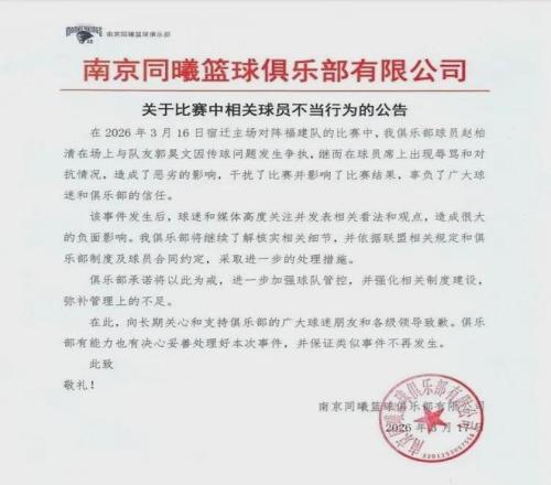 賽后,同曦隊官方發(fā)文道歉,如下:
