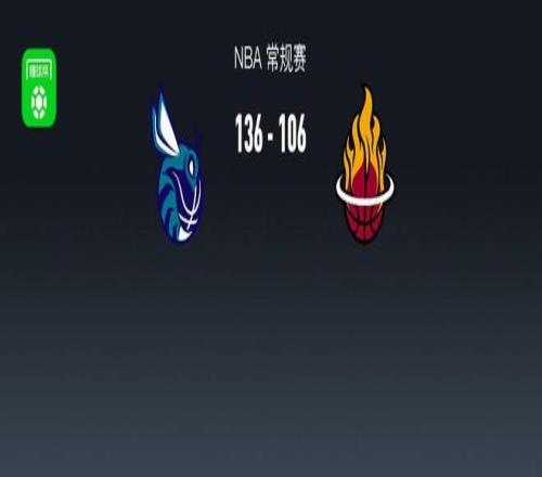 第四節(jié)黃蜂布蘭登-米勒拿下8分,熱火諾曼-鮑威爾拿下5分,最終黃蜂136-106戰(zhàn)勝熱火