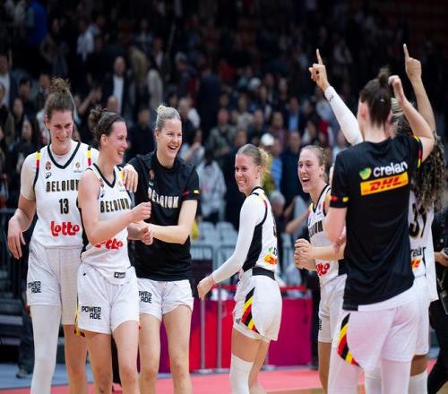 ↑3月12日,比利時隊(duì)球員賽后慶祝勝利。當(dāng)日,在武漢舉行的2026年女籃世界杯資格賽A組比賽中,中國隊(duì)65:80不敵比利時隊(duì)。新華社記者 伍志尊 攝