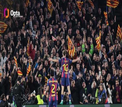 代表巴薩單賽季歐冠參與進(jìn)球上雙,費(fèi)爾明是西班牙球員第一人