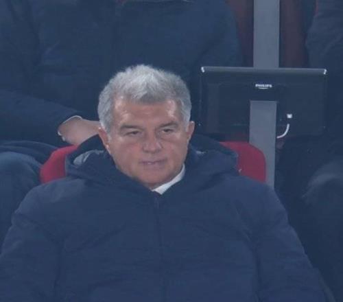 目睹此場景,剛剛成功連任巴薩主席的拉波爾塔在看臺上露出了有些郁悶的表情。