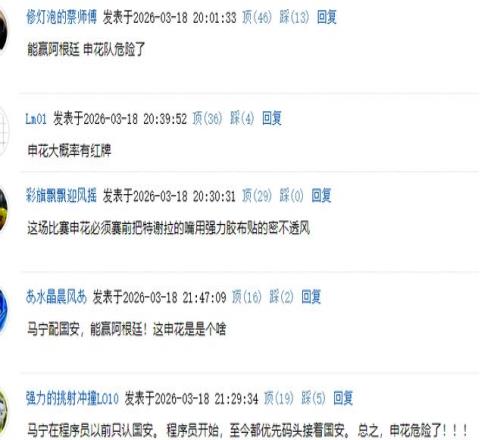 據(jù)直播吧的報道,馬寧將執(zhí)法中超第3輪北京國安對陣上海申花的比賽。對于足協(xié)來說,這種重任非馬寧莫屬。記得上賽季的在工體的“京滬大戰(zhàn)”,也是馬寧主吹的。足協(xié)如此安排,直接引爆評論區(qū),球迷踴躍 留言,紛紛發(fā)表自己的睿智觀點(下圖)。