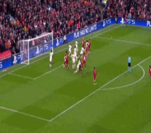 第90分鐘,索博斯洛伊角球傳中,范戴克爭頂,麥卡利斯特門前推射得手,不過裁判認(rèn)為范戴克沖撞門將在先。